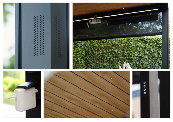 - Pergola à lames acoustiques renforcées au vent